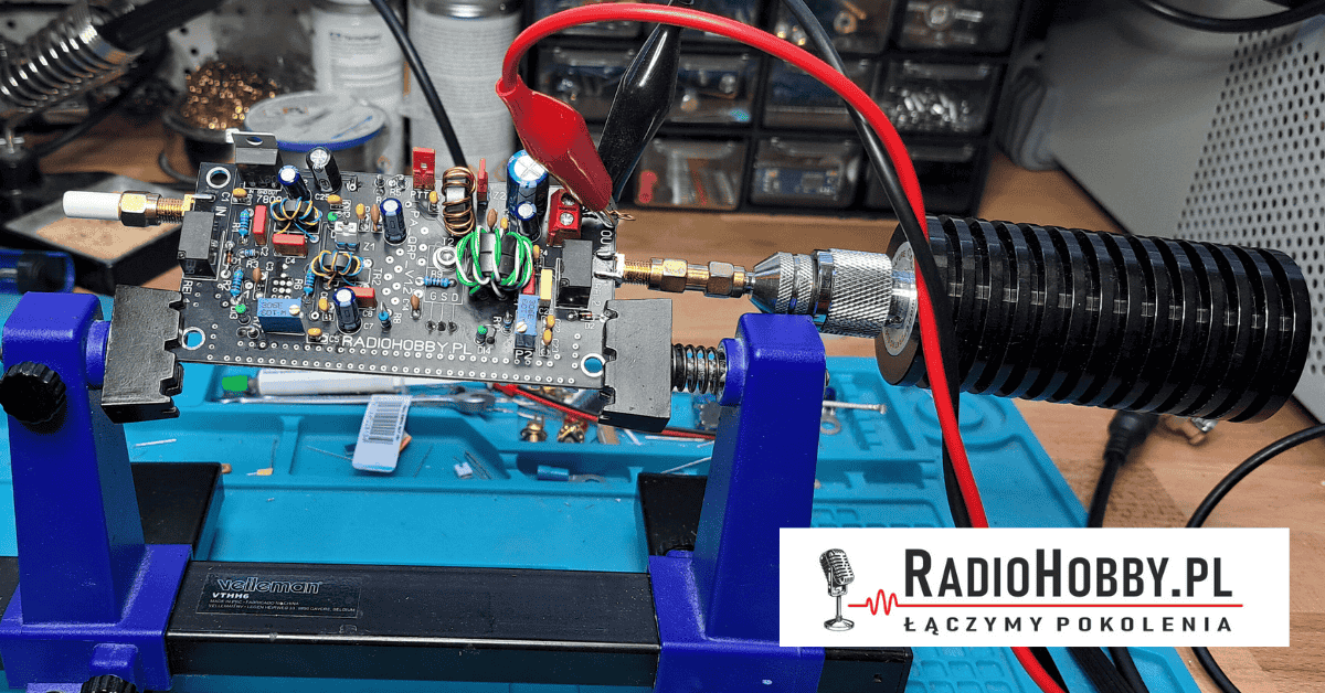 Kończymy lutowanie. Ostatnie zadanie to przykręcenie radiatora do tranzystora RD16HHF1. W naszym wykonaniu to śruba ampulowa M 3×20 i skręcanie na kanapkę 🙂 Od góry PCB podkładka śrubaod spodu podkładka i nakrętka M3, w naszym przypadku kolejna nakrętka i podkładka dały dobrą wysokość by po nałożeniu pasty termoprzewodzącej przykręcić radiator. O wielkości radiatora może uda nam się coś jeszcze napisać. Ważne by na etapie uruchamiania mieć zamontowany radiator. Jeżeli zamontujemy zbyt mały kawałek przypadkowej wielkości blaszki możemy narazić tranzystor na pracę w wysokiej temperaturze co może spowodować jego trwałe uszkodzenie.