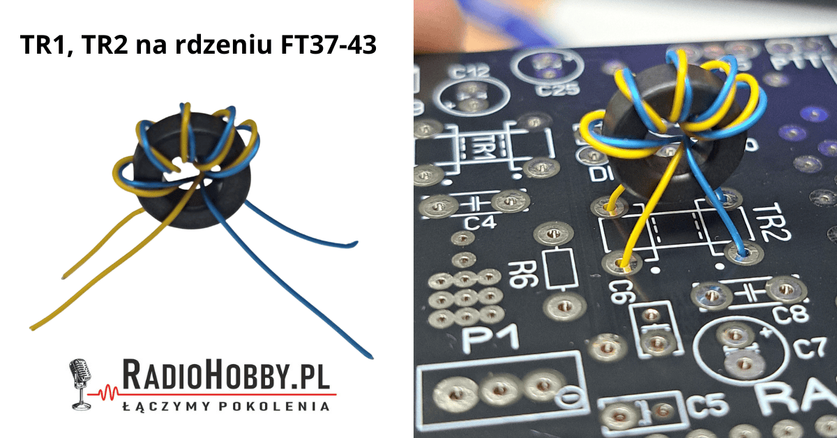 Podłączenie jak w TR1 i TR2 tam gdzie kropeczki na PCB tam początek tam gdzie brak kropek wyjście przewodów za rdzeniami. Zwróćcie uwagę bo przez dwa rdzenie i nieco węziej umieszczone pady lutownicze zmienia się optycznie ułożenie i można niepoprawnie wlutować.